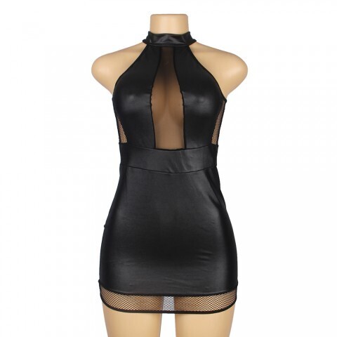Кожаное платье Ohyeah с сетчатыми вставками, 3XL-4XL