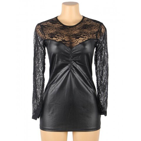 Кожаное платье с кружевной отделкой Ohyeah Sexy lace +стринги, L