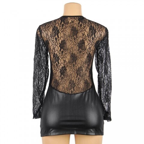 Кожаное платье с кружевной отделкой Ohyeah Sexy lace +стринги, S-M