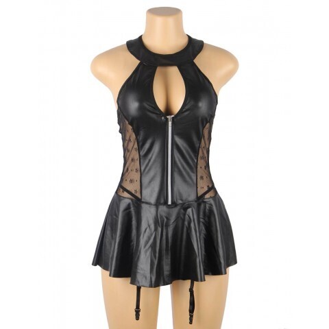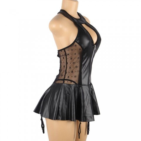 Кожаное платье со шнуровкой и юбкой-воланом Ohyeah +стринги, XL-2XL