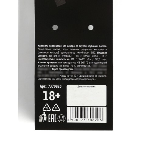 • состав - сахар, патока, ароматизатор, вода, натуральный краситель;