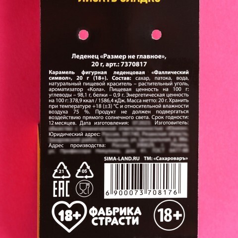 Леденец в форме пениса «Размер не главное» со вкусом колы от Фабрики страсти — это игривый и забавный аксессуар, который станет отличным способом добавить юмора и лёгкости в интимную атмосферу. Он идеально подходит для тех, кто не боится смеяться над стереотипами и хочет привнести в свою сексуальную жизнь немного фана и флирта.