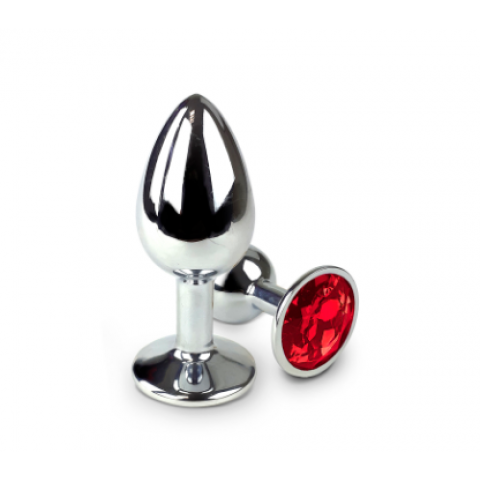 Маленькая металлическая анальная пробка с красным кристаллом Anal Pleasure M от Alive (8×3,4 см)