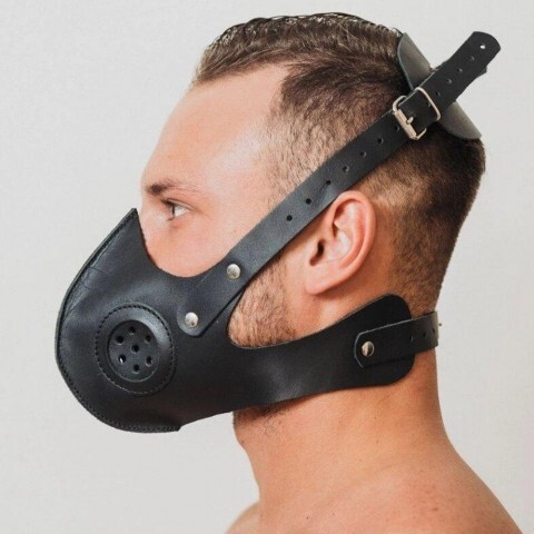 Выполнен аксессуар из натуральной кожи в черном цвете со вставками по бокам, похожими на фильтры противогаза. Это придаст вашему образу дерзости, от которой ваша партнерша будет возбуждена до предела, пребывая в томном ожидании ваших действий. Надежно фиксируется на голове и подойдет для продолжительной БДСМ-сессии.