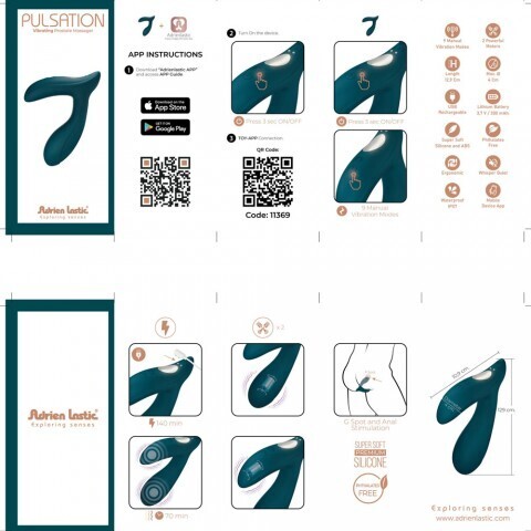 PULSATION — эргономичный массажёр простаты с двумя сверхтихими моторами и дистанционным управлением через мобильное приложение. Корпус из ультрамягкого силикона в сочетании с продуманной геометрией обеспечивает направленную вибрацию и комфортную посадку. Устройство водонепроницаемо по стандарту IPX7, перезаряжается через USB (встроенный аккумулятор 3,7 В / 300 мА·ч) и предлагает 9 режимов ручной вибрации, а также дополнительные режимы при управлении из приложения. Максимальный диаметр — до 4 см; длина — около 12,9 см.