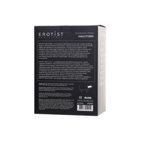 Toyfa Erotist Hailstorm — современный мужской мастурбатор с акцентом на тактильную реалистичность и вариативность ощущений. Минималистичный корпус не имитирует интимные формы и органично смотрится на виду, а внутри скрывает продуманную текстуру, которая обеспечивает плотный контакт и равномерную стимуляцию по всей длине. Электронный модуль сочетает три типа воздействия: 6 режимов вибрации для ритмичной пульсации, 5 режимов электростимуляции для дополнительных «искристых» акцентов и функцию подогрева, создающую приятное ощущение тёплого соприкосновения. Такое сочетание помогает точно подобрать интенсивность под настроение — от мягкого релакса до выразительной, глубокої стимуляции.