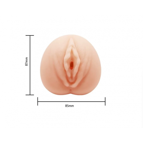 Внешняя часть имитирует женскую вульву с аккуратно проработанным рельефом. Волнистые, слегка приоткрытые половые губы и выраженные складки усиливают визуальную реалистичность. Центральный вход ведёт во внутренний тоннель, который обеспечивает ощущение плотного и естественного контакта.