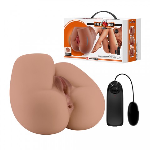 Мастурбатор реалистичный двойной Bernace с вибрацией (анус+вагина) коричневый