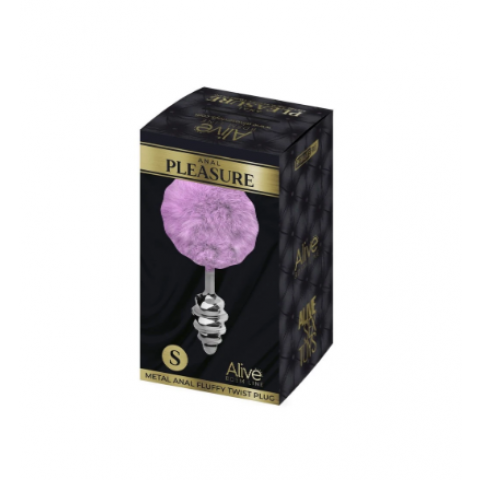 Анальная пробка Alive Fluffy Twist, металл с розовым меховым хвостиком