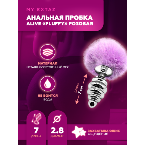Эта анальная пробка Fluffy Twist от Alive выполнена из высококачественного серебристого металла с рельефной поверхностью, начинающейся с плавного кончика для комфортного введения и расширяющейся к основанию. На конце крепится пушистый розовый меховой хвостик, который добавит эстетики и лёгкого акцента в ваши игры.