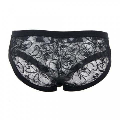 Мужские трусики-танга (чёрные, полупрозрачная фактура с узором)