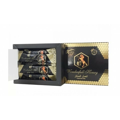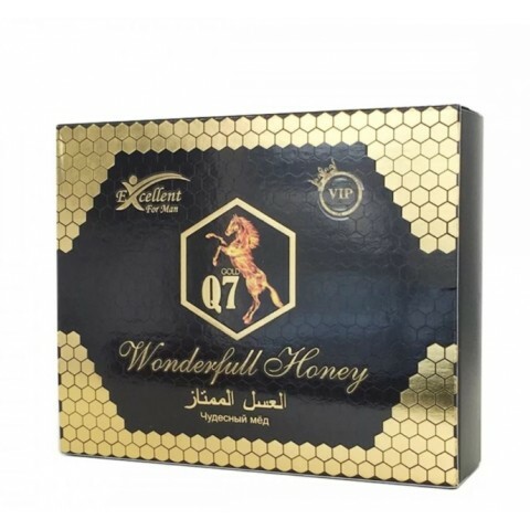 Мёд Q7 для мужчин - премиальный натуральный афродизиак, созданный на основе натурального мёда, эпимедиума, корня ферулы (Ferula Eleocharis), трибулуса (Tribulus Terrestris), рожкового дерева, красного женьшеня, кожуры корицы и маточного молочка. Эта уникальная формула сочетания ингредиентов известна с давних времен и эффективна при приеме для улучшения общего самочувствия я ряда других показаний. Вегетарианский мед, главный компонент, богатый антиоксидантами и ферментами, поддерживает иммунную систему организма, способствует пищеварению и улучшает общее самочувствие. Исследования показали, что уникальный состав вегетарианского меда придает ему антимикробные свойства, что делает его отличным выбором в качестве природного афродизиака.
