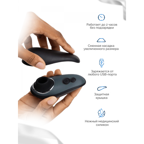 Инновационный бесконтактный стимулятор с технологией Pleasure Air нежно воздействует воздушными волнами, имитируя оральные ласки.