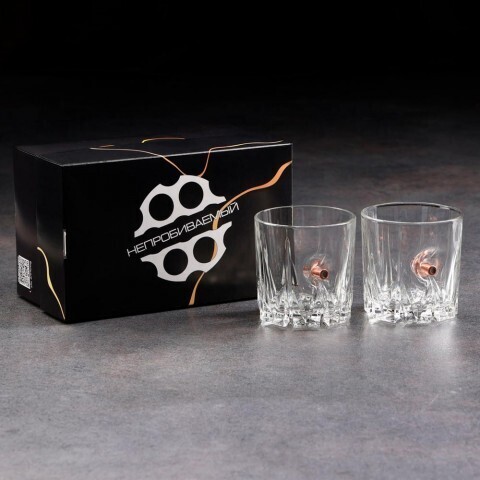 Набор "Непробиваемые. Венеция с пулей" сразу приковывает внимание: два элегантных стакана из прочного стекла с необычной деталью — вмонтированной пулей, будто застывшей в моменте. Это не просто эффектный акцент, а символ характера, внутреннего стержня и силы, которая говорит без слов.