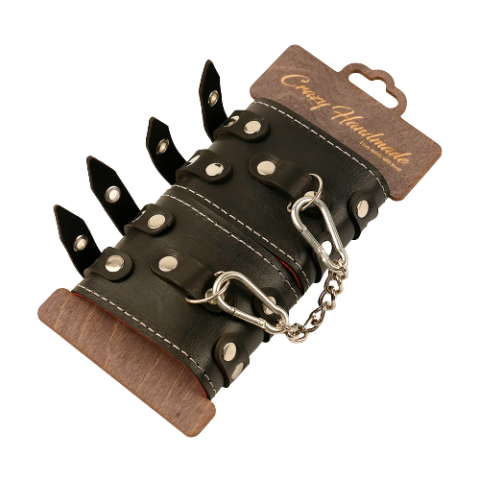 Наручники из кожи с двумя ремнями и красной подкладкой от Crazy Handmade — сочетание стиля и комфорта. Они выполнены из двух слоев: наружный слой — из жесткой кожи, а внутренний слой, мягкий и приятный на ощупь, выполнен в красном цвете, чтобы обеспечить максимальный комфорт при носке и избежать натирания кожи.