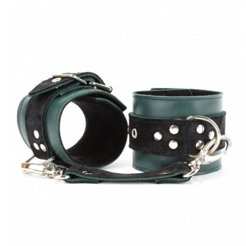 Наручники из натуральной кожи изумруд от BDSM Арсенал