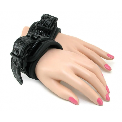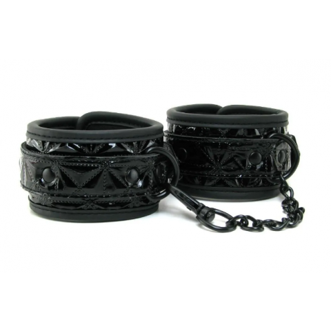 Выполнены они из смеси винила и полиуретана в черном цвете, лицевая сторона которых декорирована стильной узорной отделкой с лакированным покрытием, переливающимся на свету. Станут идеальным вариантом как для новичков, так и для более опытных любителей острых ощущений, так как ничего не может быть более возбуждающим, чем подчинить себе свой объект вожделения. Зафиксируйте ему руки и накройте его пеленой ошеломительных наслаждений, которым он не сможет сопротивляться.