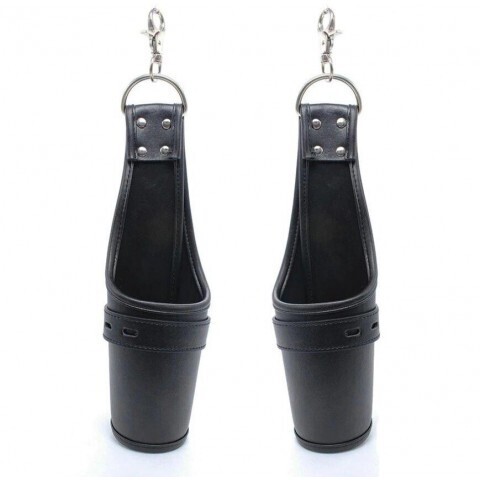 Наручники с кольцом для фиксации изготовлены из прочной искусственной кожи с мягкой подкладкой внутри. В комплекте — замок с ключом и D-образное кольцо для крепления к любому надёжному выступу. Универсальный размер манжет (макс. окружность запястья 21 см) подходит большинству пользователей.