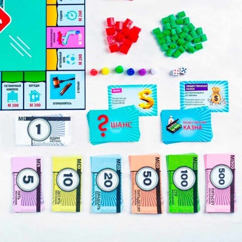 Погрузитесь в захватывающий мир финансов и сделок с этой настольной игрой. В разные ходы вы будете покупать недвижимость, открывать филиалы, брать кредиты и соревноваться за наивысшую прибыль. Карточки «Шанс» и «Общественная казна» вносят непредсказуемые повороты, а динамика торгов не даст заскучать ни одному участнику.