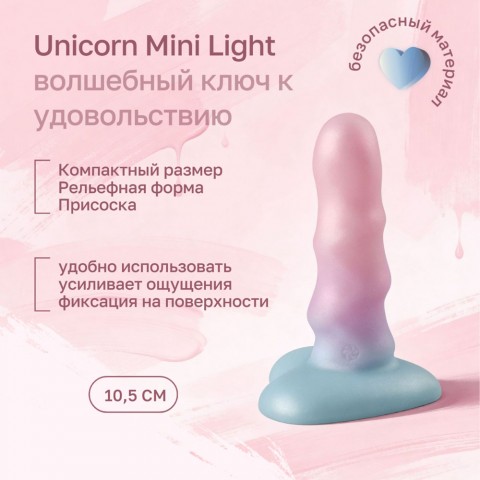 Нереалистичный дилдо Unicorn Mini Light выполнен в компактном формате и сочетает продуманную форму с выразительной текстурой. Диаметр 3,5 см обеспечивает сбалансированный контакт, а уменьшенная длина делает модель удобной для более контролируемого использования.