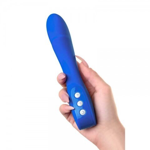Девайс перезаряжаем и выполнен из бархатистого гипоаллергенного силикона в синем цвете. Его продуманная форма и гибкое исполнение с мягкой серединой окажет положительное действие на ваше с ним времяпрепровождение, даря возможность на различные эксперименты путем регулирования угла стимуляций. В вашем распоряжении 10 режимов потрясающей вибрации, контролируемой с помощью кнопок на рукоятке, которые и станут виной будоражащих ощущений, доводящих до оргазмов.