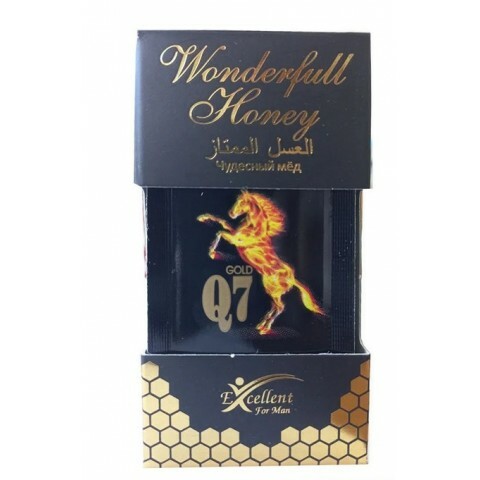 Мёд Q7 для мужчин - премиальный натуральный афродизиак, созданный на основе натурального мёда, эпимедиума, корня ферулы (Ferula Eleocharis), трибулуса (Tribulus Terrestris), рожкового дерева, красного женьшеня, кожуры корицы и маточного молочка. Эта уникальная формула сочетания ингредиентов известна с давних времен и эффективна при приеме для улучшения общего самочувствия я ряда других показаний. Вегетарианский мед, главный компонент, богатый антиоксидантами и ферментами, поддерживает иммунную систему организма, способствует пищеварению и улучшает общее самочувствие. Исследования показали, что уникальный состав вегетарианского меда придает ему антимикробные свойства, что делает его отличным выбором в качестве природного афродизиака.