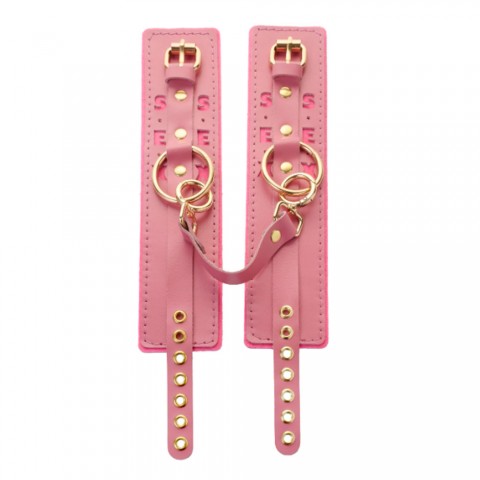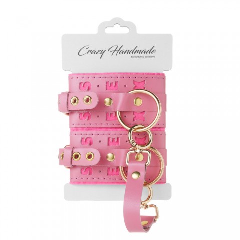 Розовые кожаные оковы с надписью «SEX» — символ дерзости и страсти. Внутренняя сторона, мягкий фетр, нежно касается кожи, даря комфорт при каждом движении. Надежная стальная фурнитура с золотистым покрытием придаёт аксессуару прочность и элегантность, а кожаный соединитель с двумя карабинами превращает оковы в универсальный инструмент для любых игр.