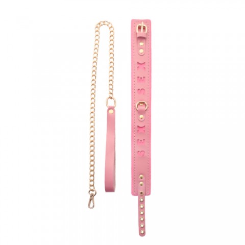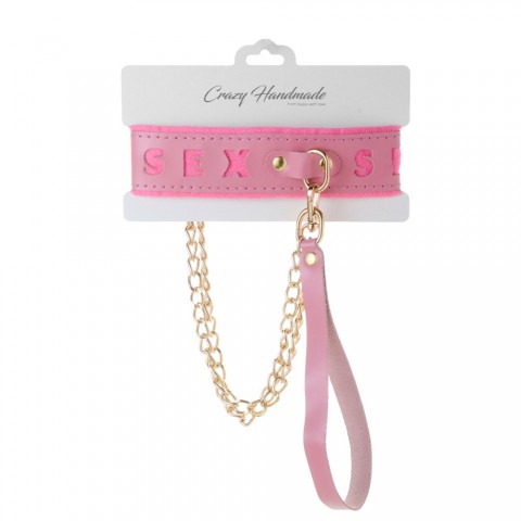 Ошейник розовый с поводком с надписью SEX, фетр, золото