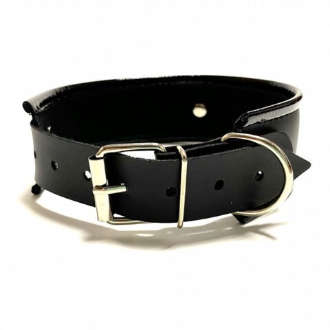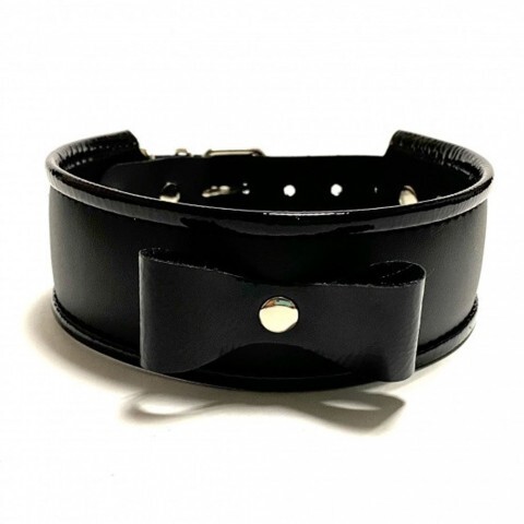 Ошейник выполнен из матовой эко-кожи, а бант и вставки по краю - из лаковой кожи;