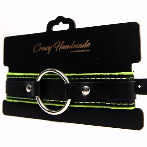 Ошейник с мягкой зеленой подкладкой Crazy Handmade