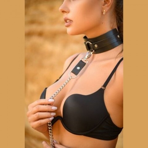 Элегантный ошейник с поводком Lady’s Arsenal Black — аксессуар для ролевого образа с акцентом на стиль и контроль. Основание выполнено из натуральной кожи с аккуратной строчкой и металлической фурнитурой; в комплект входит металлическая цепочка с кожаной ручкой. Размер универсальный: регулируется ремешком и подходит на обхват шеи приблизительно 30–40 см. Бархатистая лицевая сторона кожи комфортно прилегает, а прочная конструкция обеспечивает уверенную фиксацию при перемещении партнёра.