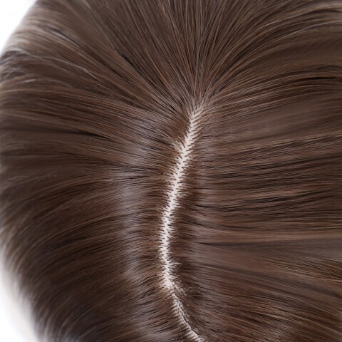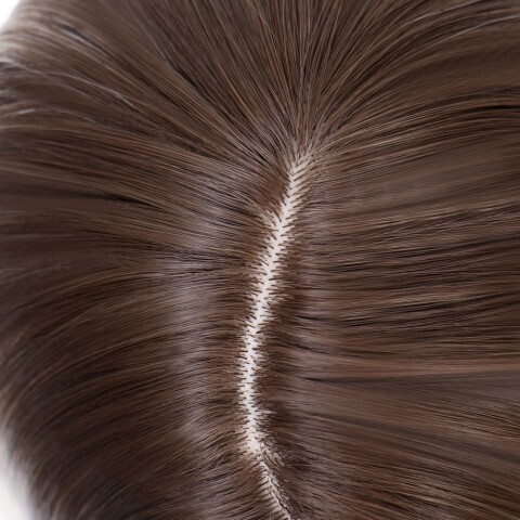 Промойте под тёплой проточной водой, придерживая шапочку. Промокните парик мягким полотенцем — не выкручивайте.