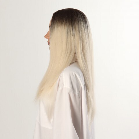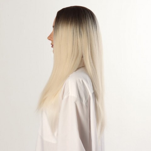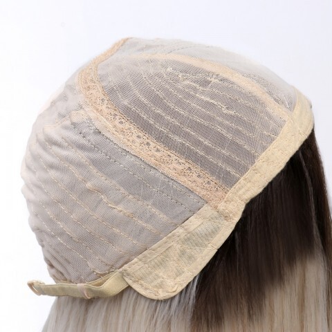 Аккуратно наденьте парик, двигаясь от лба к затылку, регулируйте размер с помощью креплений и выравнивайте пробор и чёлку.