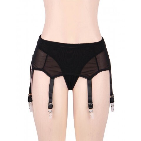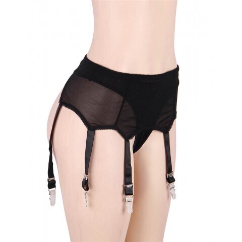 Пояс черный для чулок с ремешками на клипсах (M-L)