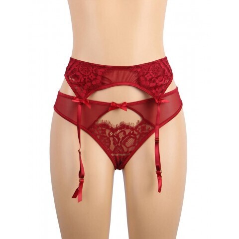 Пояс для чулок с ремешками и трусики красные Flower&bow (M-L)