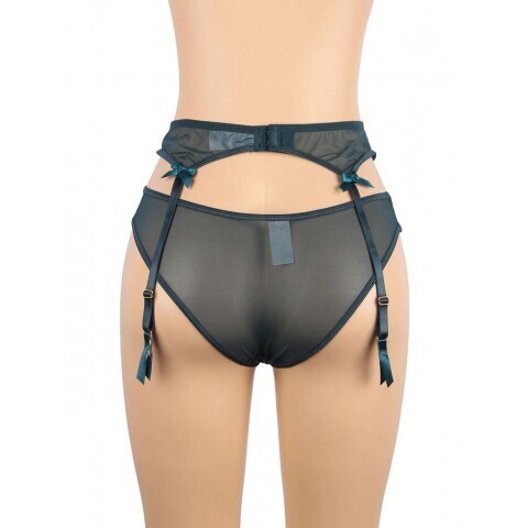 Пояс для чулок с ремешками и трусики зеленые Flower&bow (M-L)