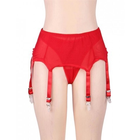 Пояс красный для чулок с ремешками на клипсах (3XL-4XL)