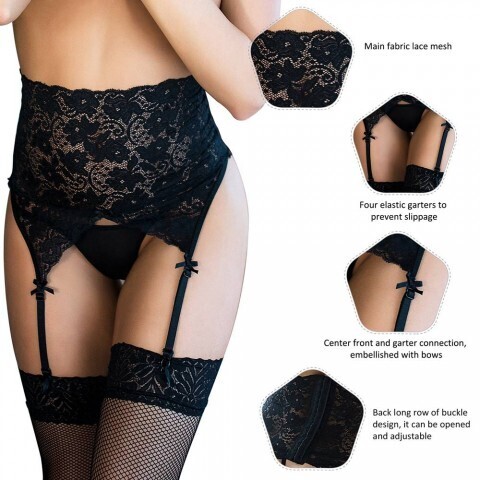 Пояс на высокой посадке с ремешками для чулок Sexy Lace, черные, XS-S