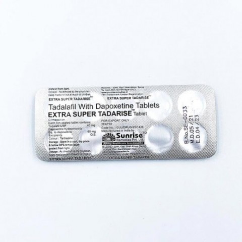 Extra Super Tadarise 60+40 mg — комбинированные таблетки для мужчин с запросом на поддержку эрекции и контроль времени эякуляции. Формула объединяет два активных компонента: тадалафил для достижения и поддержания эрекции при сексуальной стимуляции и дапоксетин для увеличения времени до эякуляции и повышения контроля. Таблетки предназначены для перорального приёма; фасовка — 10 шт., тип первичной упаковки — strip. Бренд: EXTRA SUPER TADARISE; производитель: Sunrise..