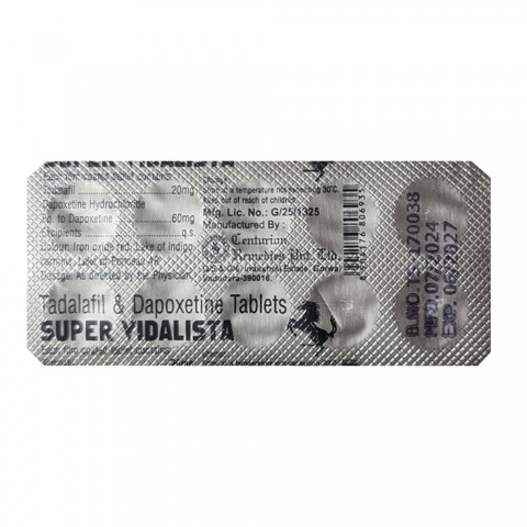 Super Vidalista — это комбинированный препарат, содержащий два активных компонента: тадалафил (20 мг) и дапоксетин (60 мг). Он используется для лечения эректильной дисфункции (ЭД) и преждевременной эякуляции (ПЭ), обеспечивая улучшение сексуальной функции и качества интимной жизни.