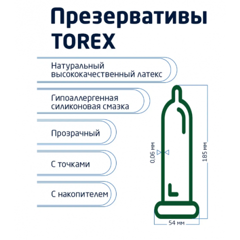 Представляем вашему вниманию надежное средство контрацепции, которое сохранит активность вашей половой жизни без опасений! Презервативы с точками Torex - это то, что нужно для безопасного и захватывающего сексуального удовольствия.