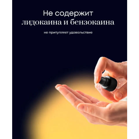 Спрей не содержит лидокаин и бензокаин, действует мягко и безопасно. Используется непосредственно перед интимной близостью: достаточно 2–4 нажатий для наступления эффекта. Объём 20 мл делает его удобным для хранения дома или в поездке.