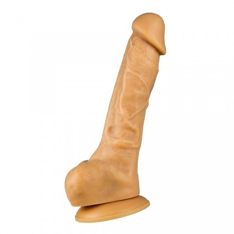 Фаллоимитатор выполнен из невероятно нежной и абсолютно безопасной смеси силикона и силекспана в бежевом цвете. Его анатомическая схожесть с настоящим половым членом подарит море блаженства, так как он обладает ярко-выраженной головкой, рельефными венами и текстурированными складками. Кроме того, его мощная мошонка дополнительно стимулирует зону клитора, обеспечивая еще более насыщенные ощущения.