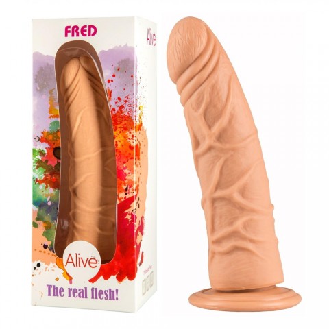 Ощутите реалистичную текстуру и форму с фаллоимитатором Fred от Alive: выразительные венки и складки, выпуклая головка и прочная присоска для надёжной фиксации на любой плоской поверхности.