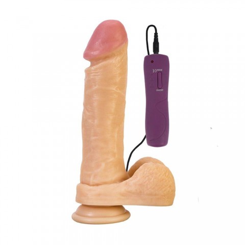 Игрушка выполнена из гипоаллергенного поливинилхлорида в бежевом цвете и отличается детализированным дизайном: выпуклая головка, рельефные вены на стволе и мощная мошонка создают натуральные ощущения. Bruno оснащен 10 режимами вибрации, которые можно легко переключать с помощью выносного пульта управления.