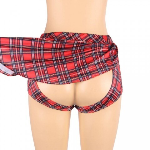 Ролевой костюм "Шаловливая студентка" (XL-2XL, рубашка, галстук, юбка-шорты с доступом)