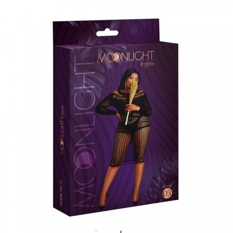 Сексуальное платье-сетка с длинным рукавом от Moonlight черное (plus size)