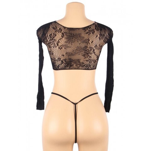 Сексуальный набор: прозрачный топ с длинным рукавом и стринги черный (размер XS-М)