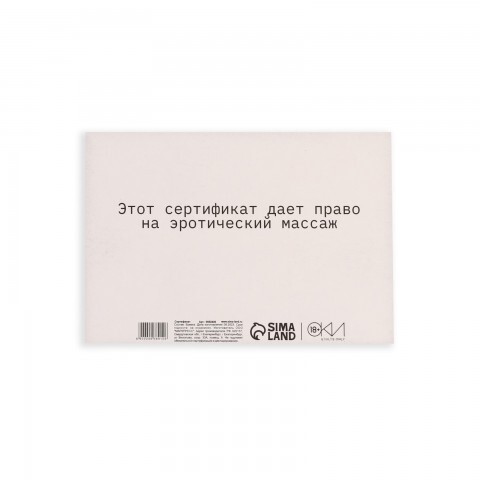 Идеально подойдёт как намёк на приятный совместный вечер, игру или романтическое приключение. Сертификат можно дополнить эротической игрой или пикантным бельём, чтобы сделать подарок ещё более запоминающимся.