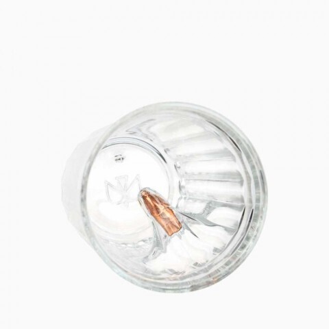 Этот стакан не про моду. Он про суть. Про вещи, которые не подстраиваются, не ломаются и не лезут на витрину. Гранёное стекло в руке — будто сжатый кулак: крепко, основательно, без лишнего. А пуля внутри — как символ. Не шуточный элемент, а немой маркер того, что хрупким здесь ничего не будет.
